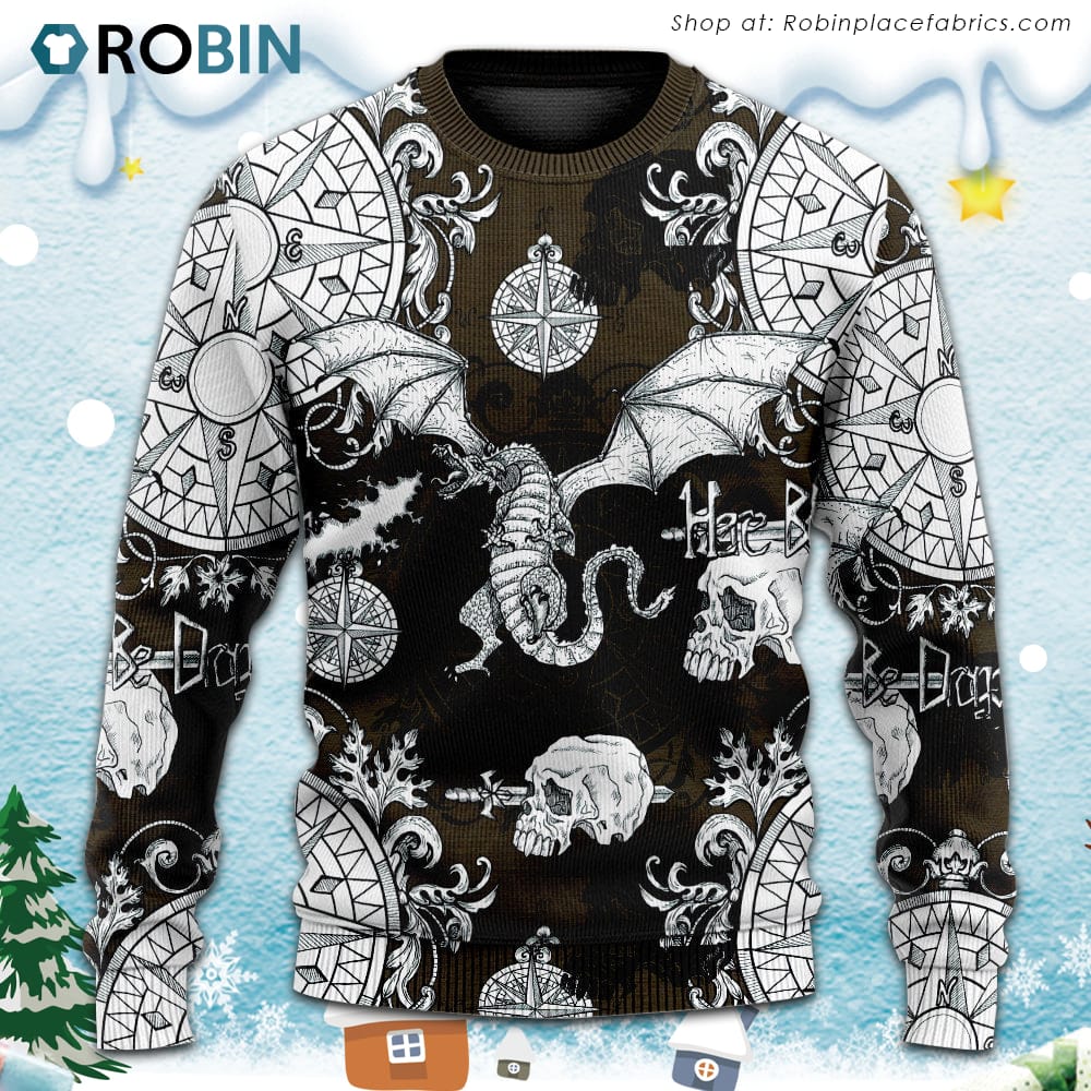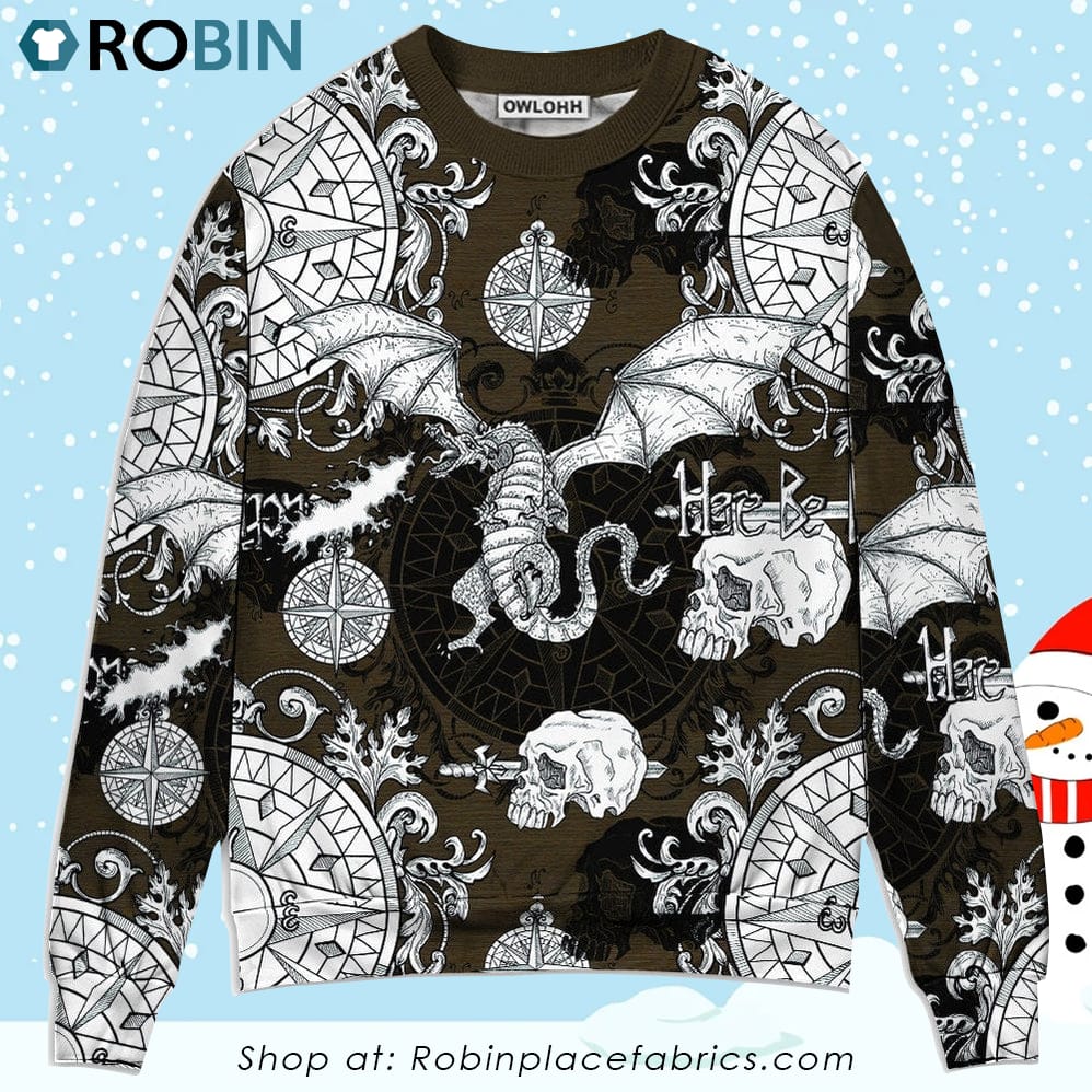Dragon Flying With Skull Gothic Style Ugly Christmas Sweater