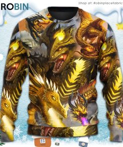 Dragon Gold Skull Lover Fight Art Style Christmas Ugly Sweater, Sweatshirt details