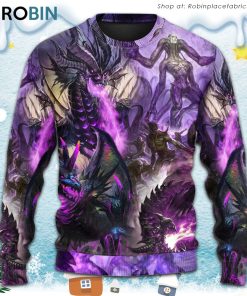 Dragon Purple Skull Monster Lightning Fight Art Style Christmas Ugly Sweater, Sweatshirt details