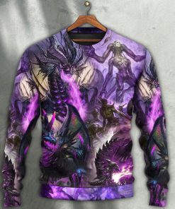 The Dragon Purple Skull Monster Lightning Fight Art Style Christmas Ugly Sweater Sweatshirt is a unique and eye-catching piece of clothing that combines various elements to create a visually striking design. With its vibrant colors and intricate patterns, this sweater is sure to stand out in any crowd. The dragon motif adds a touch of fantasy and adventure, while the lightning accents give it an edgy and dynamic feel. Perfect for the holiday season, this sweater is a playful twist on the traditional Christmas sweater. Its comfortable material and cozy fit make it a great choice for staying warm and stylish during the winter months.