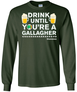 “Drink Until Youre a Gallagher – Shameless”. This shirt is available in t-shirt, hoodies, tank top and long sleeve.