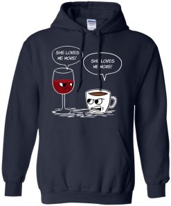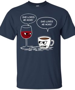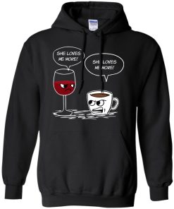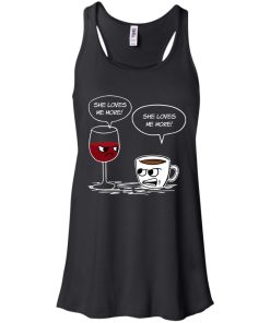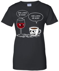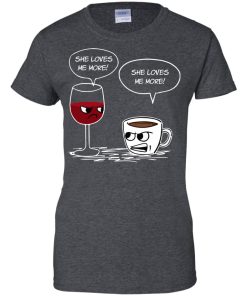 Funny Drinking shirt: She Loves Me More Coffee Wine Coffee t shirt, tank, long sleeve, hoodie available