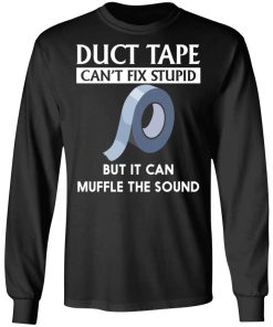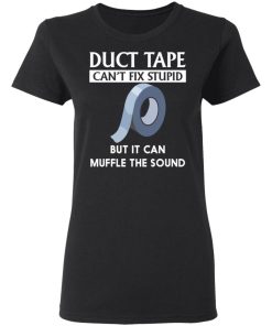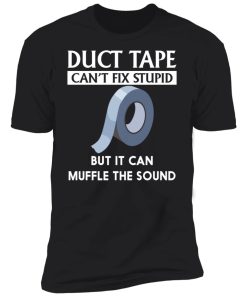 Duct tape can’t fix stupid but it can muffle the sound shirts. Available in t shirt, long sleeve, tank top, hoodie, sweatshirt and multiple color. If you want in another color please contact us.