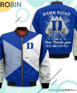 Duke Blue Devils Damn Right I Am Blue Devils Fan Now And Forever Bomber Jacket