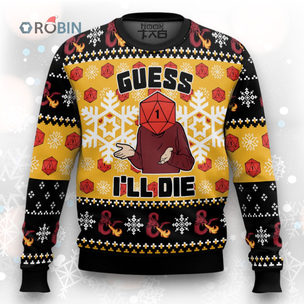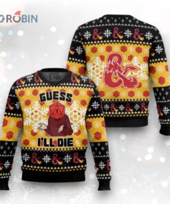 This Dungeons & Dragons ugly Christmas Sweater is perfect for holiday gatherings. Featuring a witty Guess I'll Die design with a playful nod to D&D, it combines humor with festive cheer. Imagine sharing laughs with friends, rolling dice, and creating memories. Embrace the holiday spirit and your love of gaming all in one cozy sweater. Ready to stand out this Christmas? Grab yours today!Buy Now !!