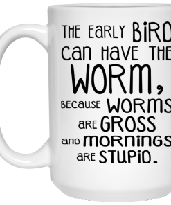 Early bird can have the worms because worms are gross and mornings are stupid mugs