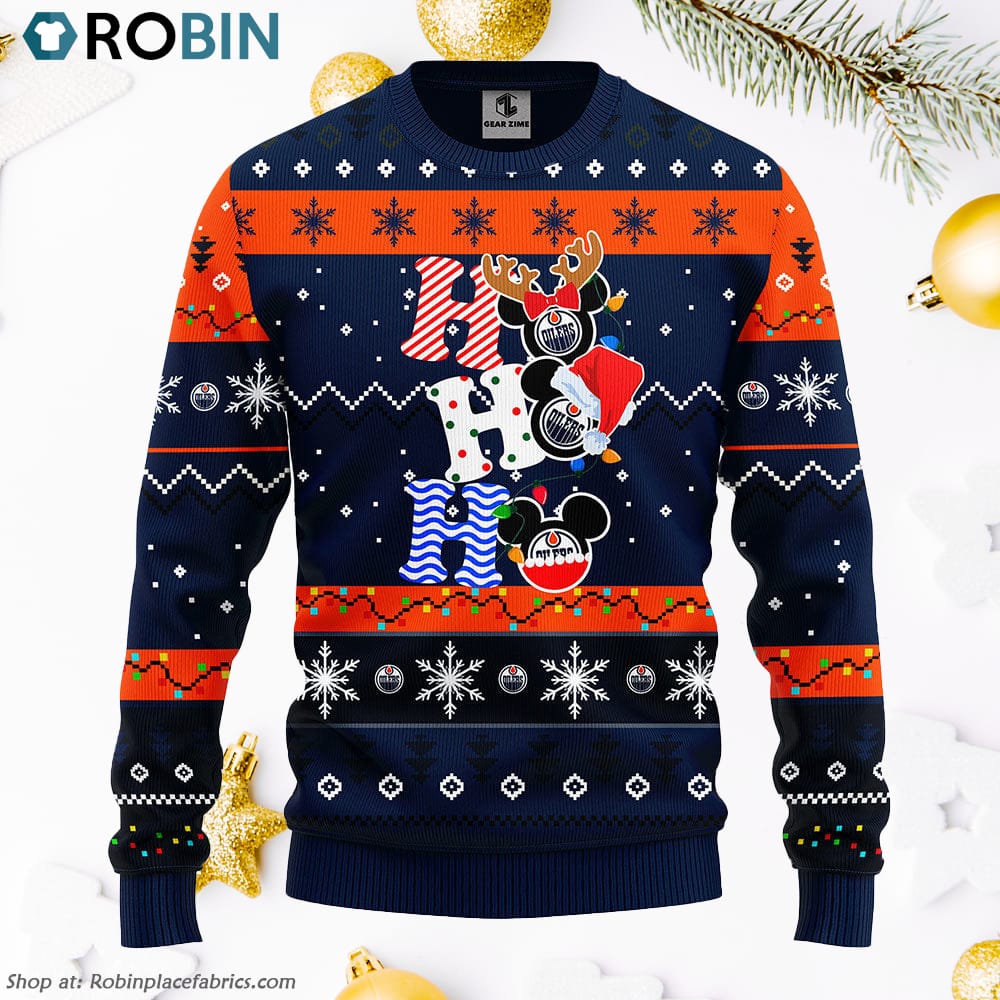 Edmonton Oilers Hohoho Mickey Ugly Christmas Sweater details