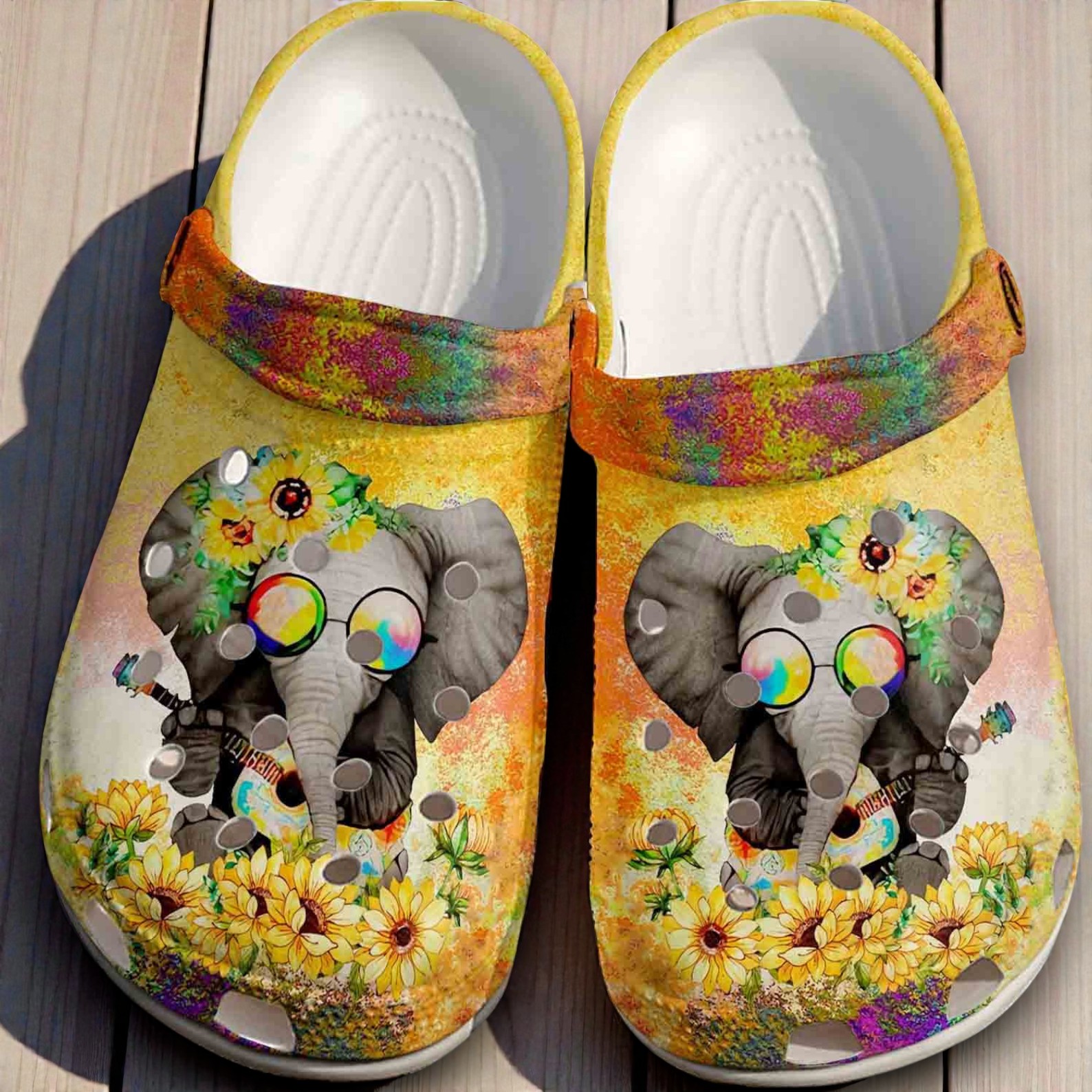 There’s something instantly cheerful about spotting these shoes in a crowd. The bright yellow background sets a lively stage, where a whimsically drawn elephant steals the show. Wearing a flower crown and rainbow sunglasses, it carries a playful vibe that feels effortlessly joyful. Surrounding it, sunflower borders and splattered paint textures add layers of color and energy without overwhelming the design. These elephant hippie sunflower shoes carry a street-art meets boho spirit that feels just right for kids and teens who aren’t afraid to embrace something a little different. It’s the kind of footwear that sparks conversation, but also feels comfortable and casual enough for everyday wear. Parents looking for a lively gift might appreciate how these shoes bring together imagination and fun in a way that connects with youthful energy. Whether it’s for running around in the park, hanging out with friends, or adding a splash of personality on casual days, these shoes feel fresh and full of life. They fit naturally into the kind of active, expressive style that resonates with families who like gifts that show thoughtfulness without fuss.