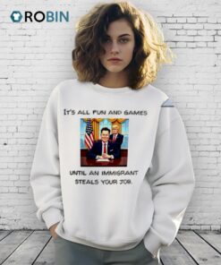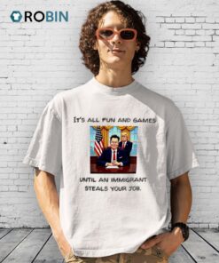 Snag a tee that sparks conversation! Provocative and humorous, this shirt challenges perspectives on immigration and the job market. A statement piece that's sure to turn heads and ignite debate. Get yours now!