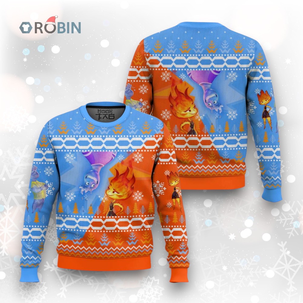 Ember and Wave, Elemental Christmas Ugly Christmas Sweater