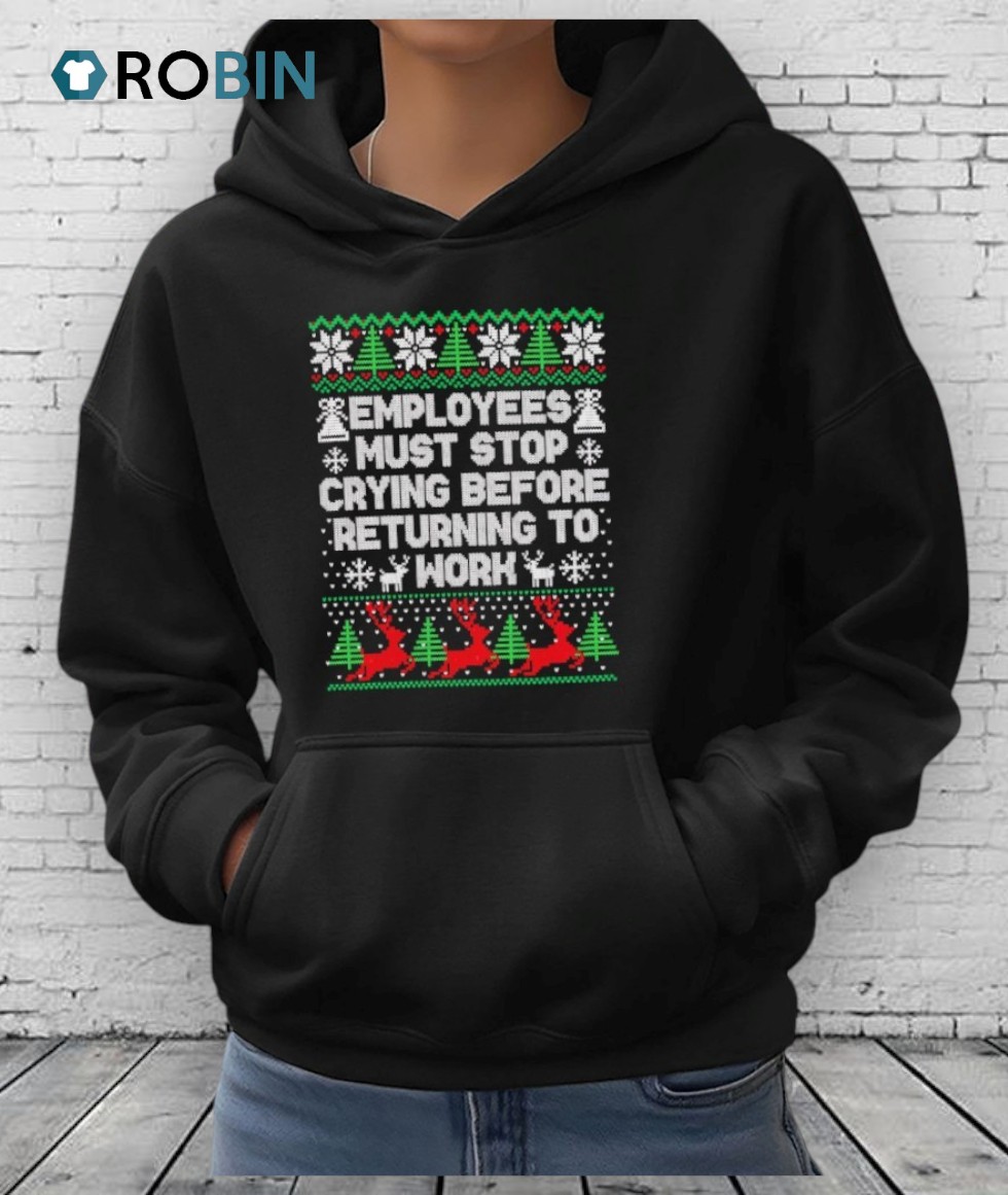 Employees Must Stop Crying Before Returning To Work Ugly Christmas Shirt