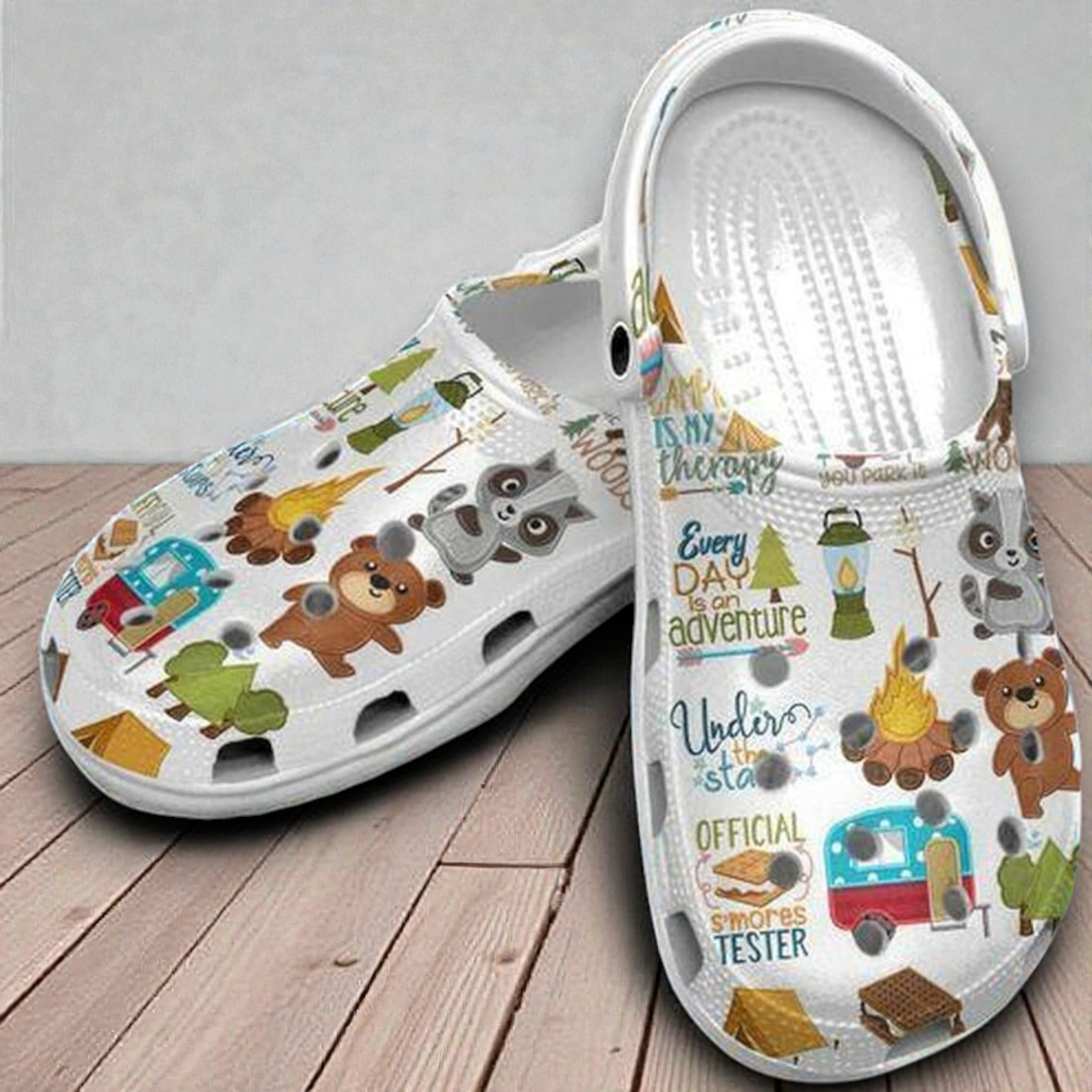 When the great outdoors calls, it’s the quiet moments around the campfire and the company of woodland creatures that resonate most deeply with those who live for adventure. This design captures that spirit exactly—playful bears, curious raccoons, and cozy koalas mingle among tents, lanterns, and campfires, all rendered in a colorful collage that feels both whimsical and genuine. Handwritten phrases scatter across the crocs, bringing a youthful vibe that’s easy to relate to, like scribbled notes from a shared backpacking journal. For couples or friends who find their escape beneath the canopy of trees, these shoes carry more than just comfort—they speak to an identity shaped by wanderlust and cozy, off-grid evenings. Every element, from camp gear to bicycles and even waffles, nods to the small joys that make outdoor life special. This isn’t just about wearing a pattern; it’s a way of carrying those everyday adventures with you, whether setting out on a trail or just dreaming of one. Gifting these crocs to someone who cherishes the wild spirit of camping is a quiet declaration of understanding, a subtle way to say I know where your heart wanders. The Every Day Adventure vibe comes through in every detail, making them an unexpectedly fitting tribute to a shared love of nature and all the stories it inspires.