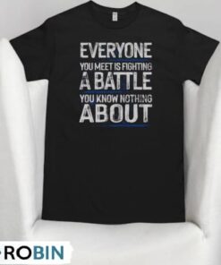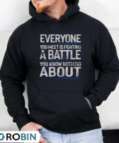 Discover a garment that speaks to the heart with a profoundly moving message. This shirt isn't just an addition to your wardrobe; it's a reminder of the silent battles that everyone around us might be facing. Its simple yet evocative design encourages compassion and understanding, serving as a gentle nudge to practice empathy in our daily lives. Crafted from high-quality materials, it offers both comfort and a meaningful statement. Wear it to inspire kindness and bridge gaps, inviting conversations that matter. Embrace the power of empathy and connect with those around you in a newly profound way.