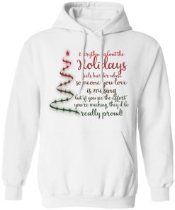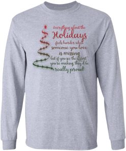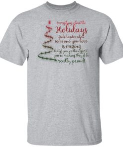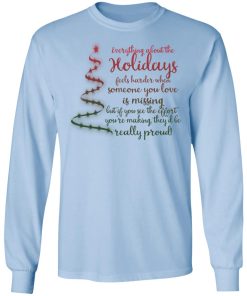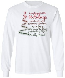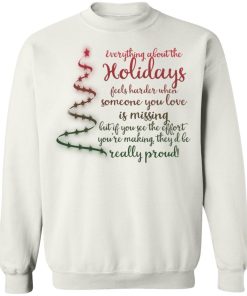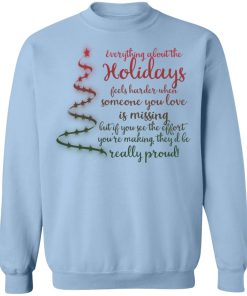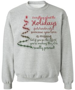 Everything about the holidays feels harder when someone you love is missing christmas sweatshirt. Buy it now, from $19.99 and $3.99 shipping. This shirt available in t shirt, long sleeve, hoodie, sweatshirt and multiple color. Quality control before delivery.