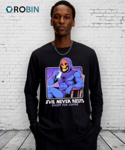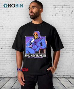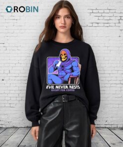 Even the most villainous need their caffeine fix! This playful design captures that moment when dark plans pause for a comforting cup of coffee. It's a fun twist on balancing the daily grind with a touch of humor. Want to spark a conversation or simply make someone smile? This shirt is the perfect choice. Grab one now and embrace your mischievous side!