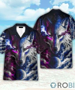 Fantasy Galaxy Wolf Hawaiian Shirt features