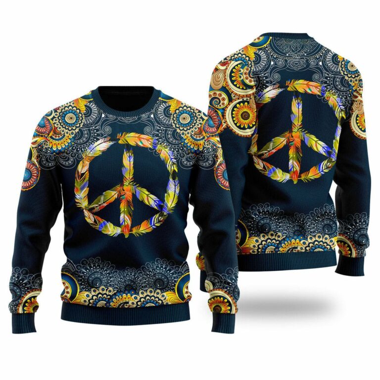 Feather Peace Sign Ugly Christmas Sweatshirt, Sweater images