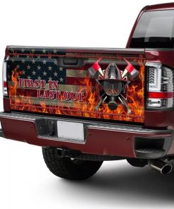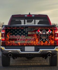 Firefighter First In Last Out Truck Tailgate Decal Sticker Wrap