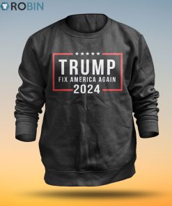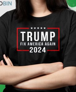 The Fix America Again Donald Trump 2024 t-shirt features a bold and patriotic design featuring the President himself and the words Make America Great Again. This stylish tee shirt is made from a comfortable blend of cotton and polyester, and has a classic fit. The back of the shirt features the words MAGA in bold, bright colors. This shirt is perfect for loyal Trump supporters who want to make their political opinions known while still looking great. It's a great way to show your support in the run up to the 2024 election.