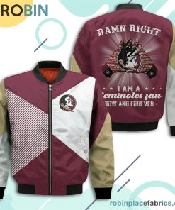 Florida State Seminoles Damn Right I Am Seminoles Fan Now And Forever Bomber Jacket