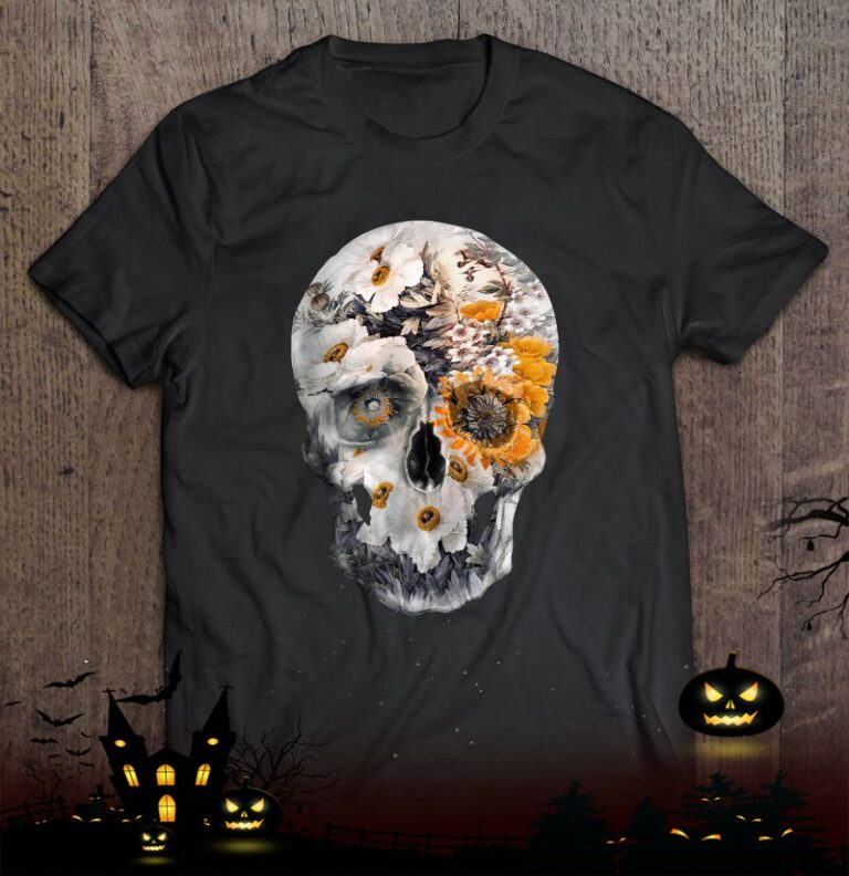 Flowery Skull Still Life Halloween Shirt for Men and Women – Halloween gift shirt