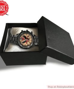 This sleek and stylish watch features a durable black stainless steel band that offers both a classic and modern look. The intricate craftsmanship of the watch is apparent in the design details, such as the intricate markings on the watch face and the sturdy clasp closure. With its versatile color and design, this watch is perfect for day-to-day wear or special occasions. The watch is timeless yet contemporary, making it a must-have accessory for any music fan or watch enthusiast.