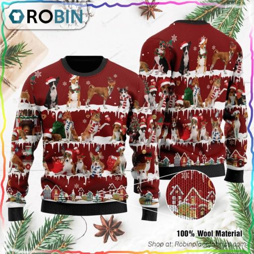This adorable holiday sweater is perfect for Basenji lovers who want to embrace the festive spirit. With a delightful design featuring cute Basenji dogs wearing Santa hats, this sweater is sure to bring a smile to your face. The cozy fabric will keep you warm during the chilly winter months, while the vibrant colors add a splash of Christmas cheer to any outfit. Whether you wear it to a holiday party or simply for a cozy night in, this ugly Christmas sweater is a must-have for any Basenji enthusiast.
