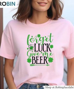 Forget Luck Give Me Beer Shirt, Retro Irish Unisex T-Shirt, Hoodie, Sweatshirt Crewneck details