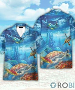 Freediving With Sea Turtles Hawaiian Shirt features