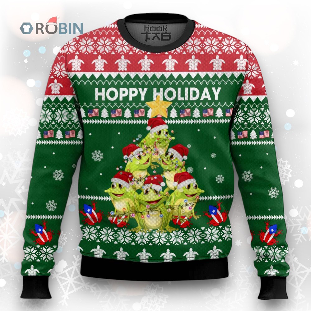 Leap into the holidays with this ribbiting-ly festive sweater! 🐸🎄 Get ready to spread some cheer (and maybe a few laughs) at your next holiday party. It's the perfect way to show off your unique style and love for all things amphibian this Christmas! Get yours now before they hop away!