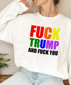 The first thing that grabs your attention is the bold, blocky text stretching across the chest in a striking rainbow gradient. Each letter is heavy, uppercase, and demands eye contact—no subtlety here, just pure, unapologetic expression. The colors shift smoothly from one hue to the next, creating a visual pulse that feels both defiant and vibrant. This shirt’s graphic is a straightforward statement made loud and clear. The mix of multi-color text against a simple shirt base creates a sharp contrast that highlights every word. There’s an intentional tension between the strong sans-serif typography and the playful rainbow—a clash that echoes the confrontational mood behind the message. For those who aren’t looking to hide their feelings, this piece offers a way to wear your perspective openly. It’s for adults who navigate politics with a blunt honesty, those attending protests or casual gatherings where heads nod in agreement rather than turn away. You won’t find this shirt in polite offices or quiet coffee shops, but it fits effortlessly into rallies, passionate discussions, or even just lounging at home with fellow like-minded friends. If you’re hunting down a robust fuck trump shirt that cuts through the noise, this is a solid choice. It goes beyond just clothing—you’re offering a statement, a spark for conversations, or a gift for someone who prefers their wardrobe with a side of outspoken conviction.