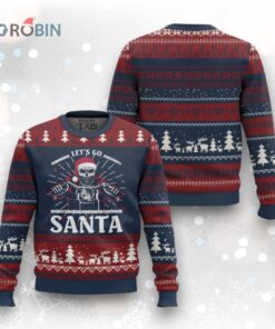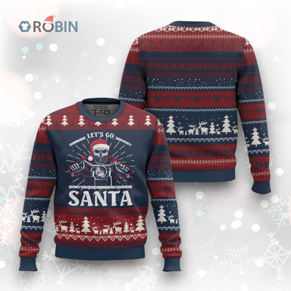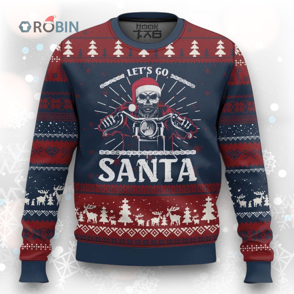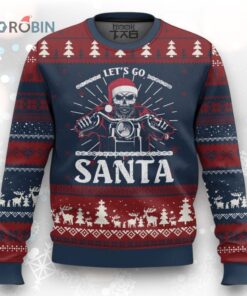Rev up your holiday cheer with this wild Santa on a motorbike sweater! 🎅🏍️ Ditch the reindeer, Santa's got a hog! Get ready for laughs and gasps at your next ugly sweater party. Perfect for the biker who loves Christmas. 🎄💀