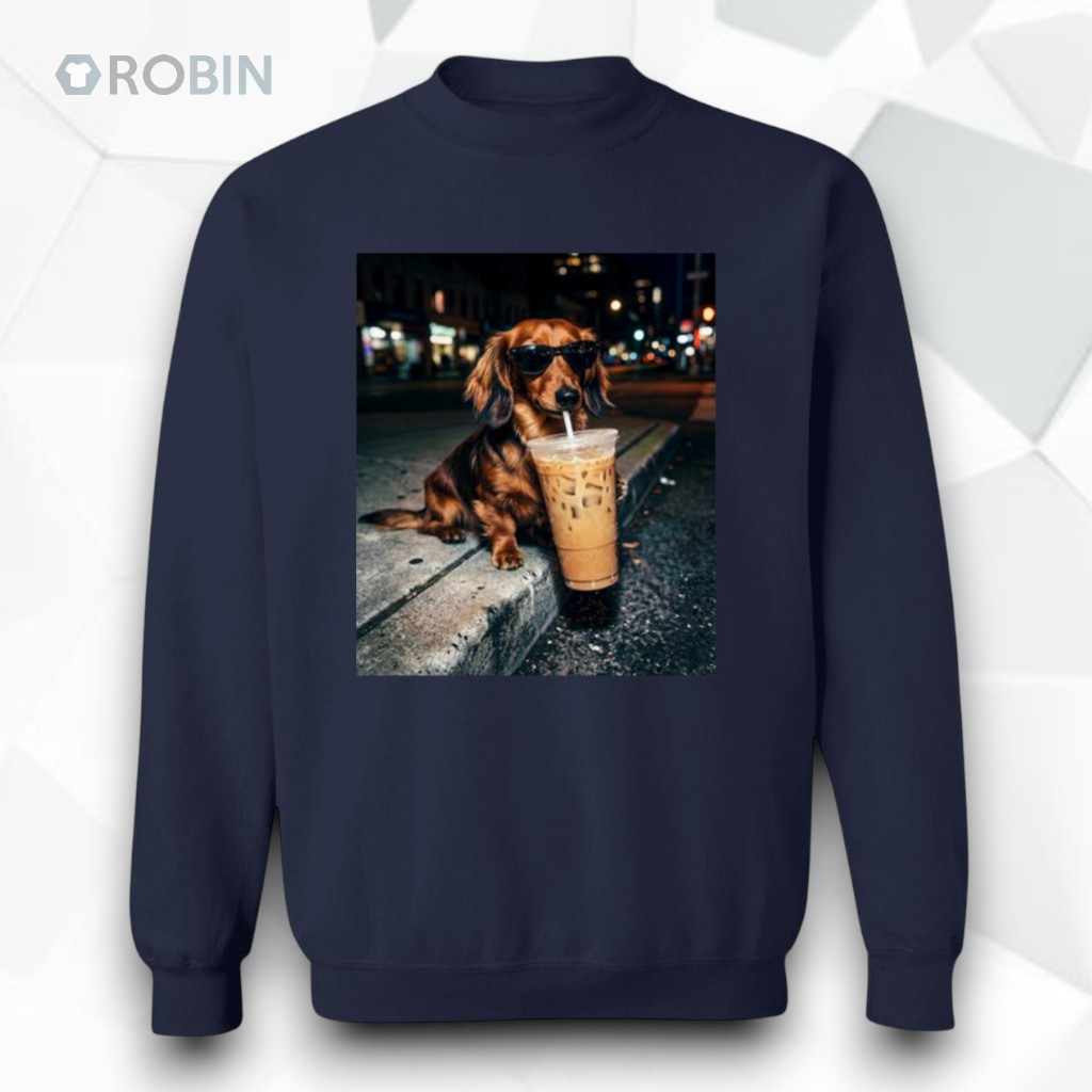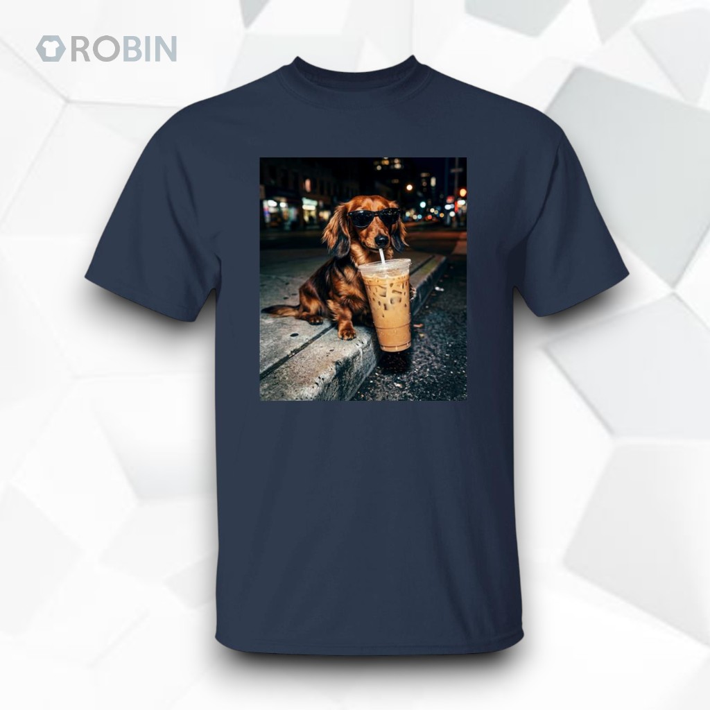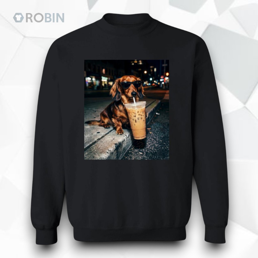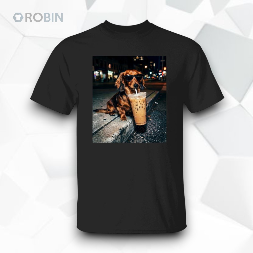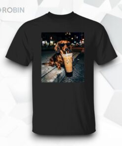 Funny Dachshund Drinking Iced Coffee Unisex Shirt