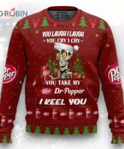 Bring smiles with a whimsical blend of humor and holiday spirit. A quirky skeleton character, paired with playful Dr Pepper-themed text, adds a fun twist to your Christmas festivities. Vibrant elements like Christmas trees and snowflakes complete this eye-catching design, perfect for spreading cheer and sparking laughter at any holiday gathering.