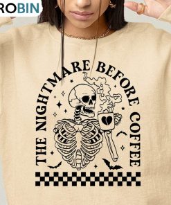 Funny Halloween Shirt, The Nightmare Before Coffee Crewneck Tee