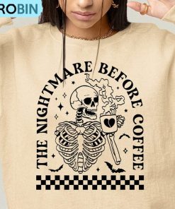 Funny Halloween Shirt, The Nightmare Before Coffee Crewneck Tee Tops details