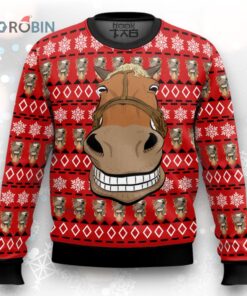 Gallop into holiday cheer with this whimsical horse-themed design, featuring a cheerful equine face adorned with classic Christmas patterns. Perfect for adding a touch of humor and festive spirit to any gathering, this sweater showcases prancing ponies and snowflakes, creating a playful and eye-catching look. Get ready to turn heads and spread laughter at your next Christmas party!