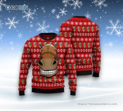 Get ready to turn heads and ignite laughter this holiday season with our hilariously whimsical, farm-themed ugly sweater! Perfect for men and women who love to make a bold and humorous statement, this festive apparel features a delightfully quirky horse face that’s sure to be the life of any Christmas party. Exuding a unique blend of charm and comedy, it’s the ideal gift for those who appreciate a touch of rustic humor in their holiday wardrobe. Celebrate with unmatched style and humor, and embrace the joyous, jolly spirit with this unforgettable festive attire!
