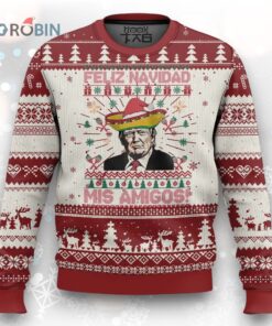 Looking to spice up your holiday wardrobe? This hilarious design features a playful take on Christmas spirit with a Mexican twist. Donning a festive sombrero, Santa brings a humorous flair to your celebrations. Paired with “Feliz Navidad Mis Amigos” text, it's perfect for those who enjoy a blend of humor and culture during the festive season. Make this sweater your go-to for holiday parties and gatherings.