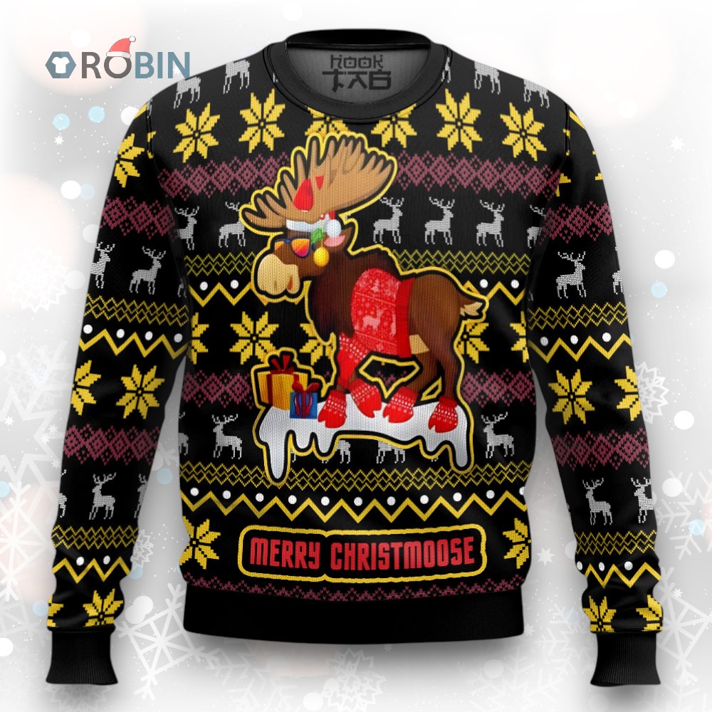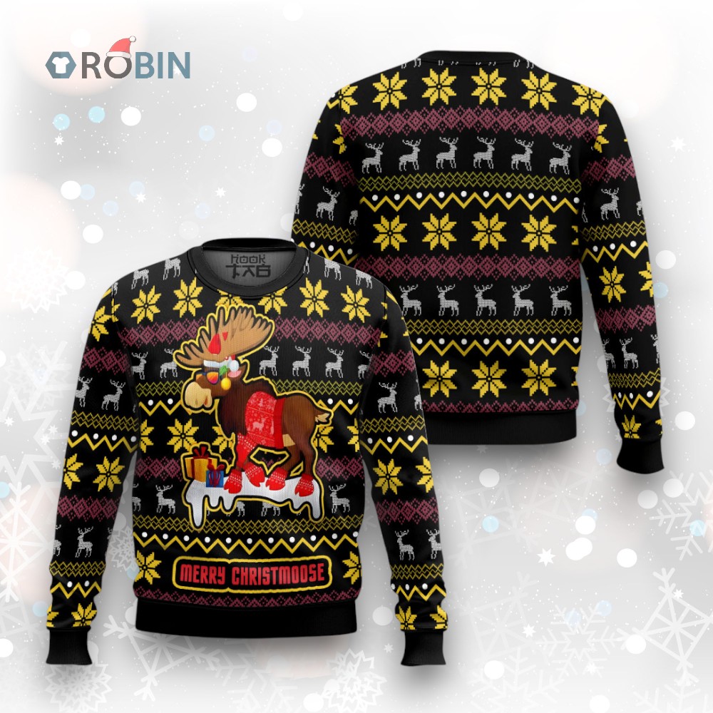 Funny Moose Graphic Ugly Christmas Sweater for Holiday Parties & Festive Celebrations