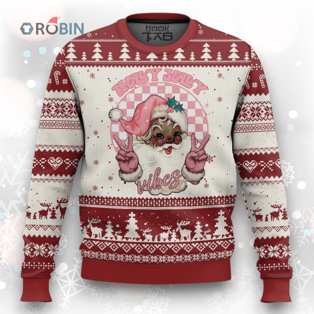 Rock around the Christmas tree in this unique sweater! 🎄🎅🏿 Embrace the holly jolly vibes with a retro twist and a dash of pink! Perfect for adding some humor to your holiday celebrations. Get ready to spread cheer (and maybe a few laughs) at your next ugly sweater party! ✨