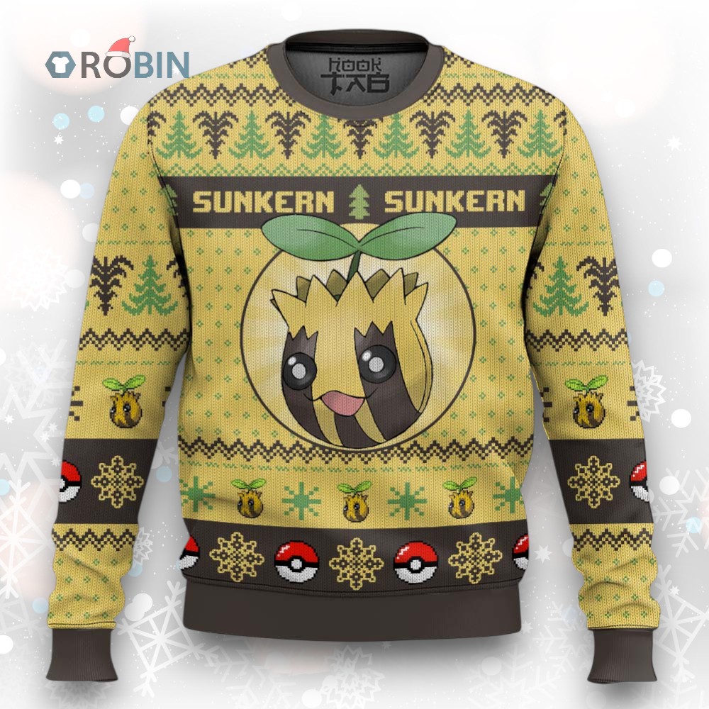 Sunkern's ready to sleigh the holidays! ☀️ This retro holiday sweater is a hilariously adorable way to show off your love for Pokemon this Christmas. Get yours before they sprout away! Limited quantities available.