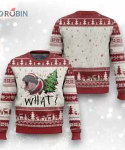 This Christmas, ditch the traditional and embrace the absurd! Rock this ridiculously cute baby hippo pushing a Christmas tree sweater. Guaranteed to be a conversation starter (and maybe win you an ugly sweater contest!). Get yours now before they're gone!
