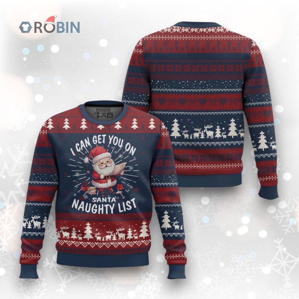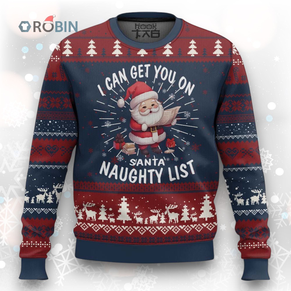 Funny Xmas Ugly Christmas Sweater I Can Get You On The Naughty List Cute Santa