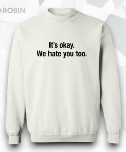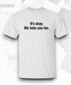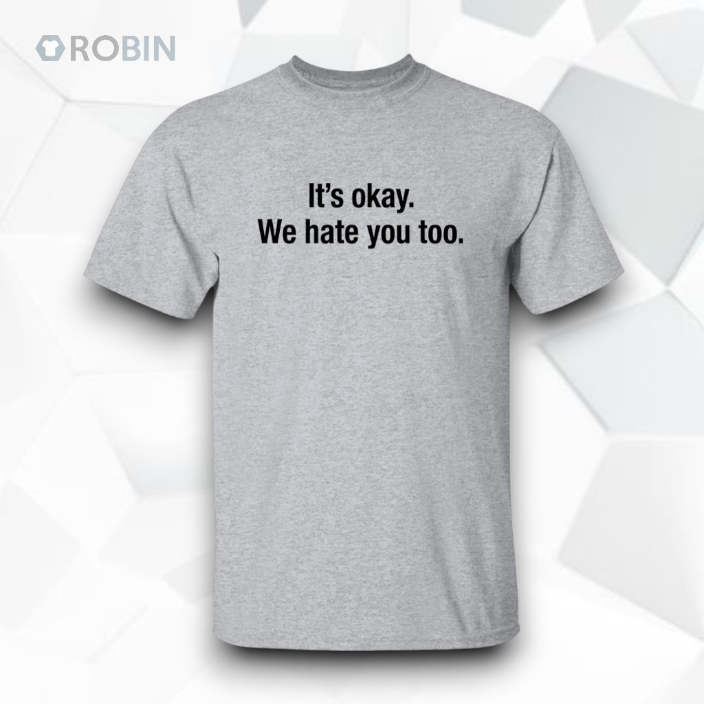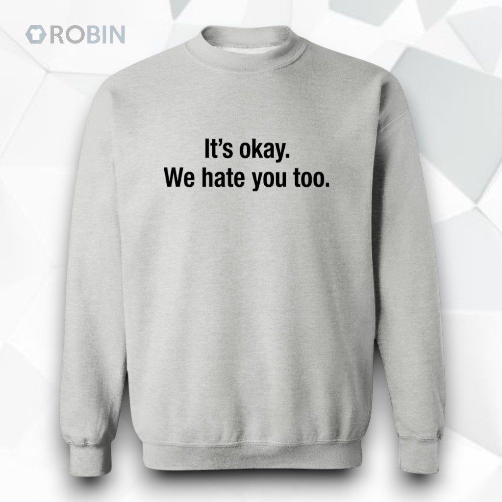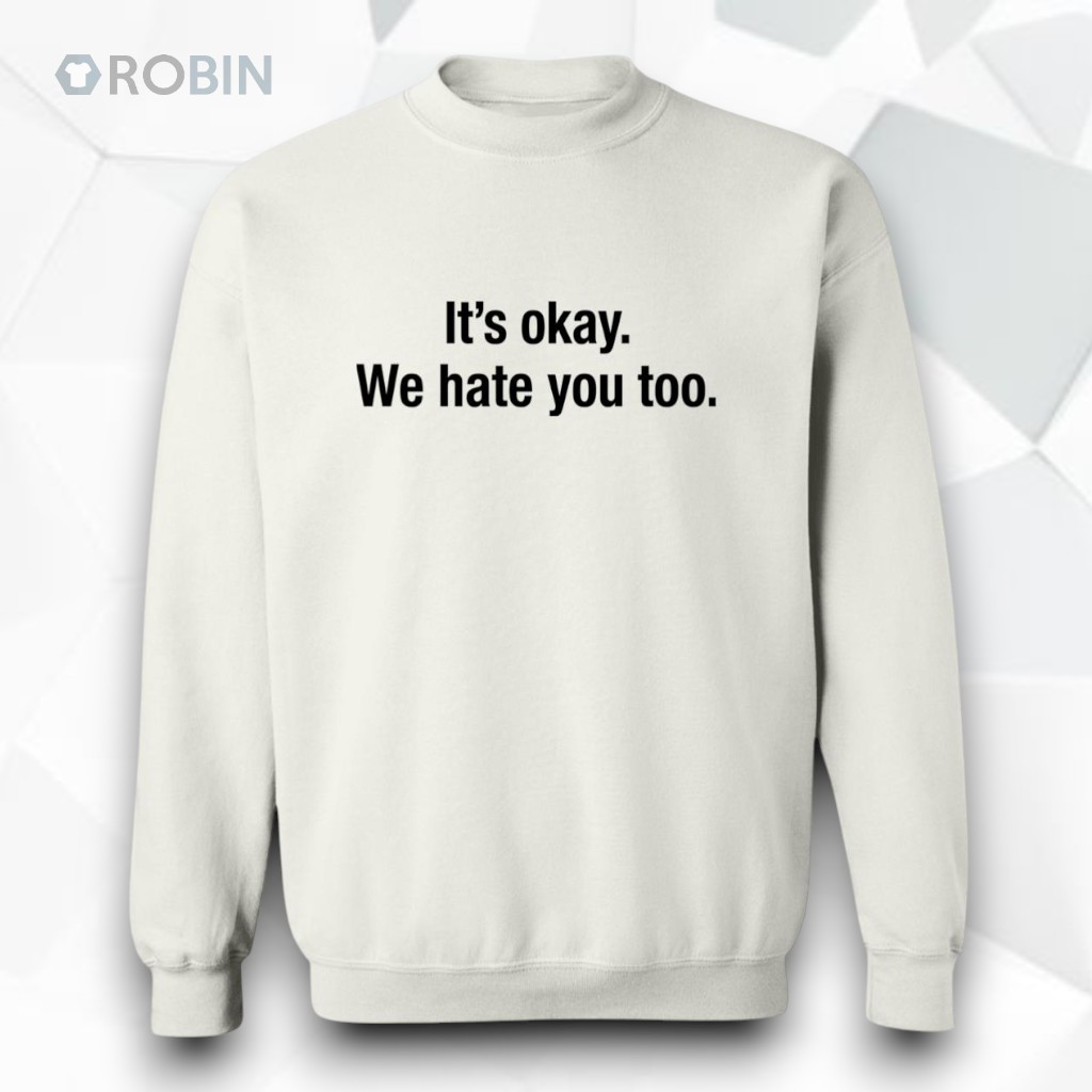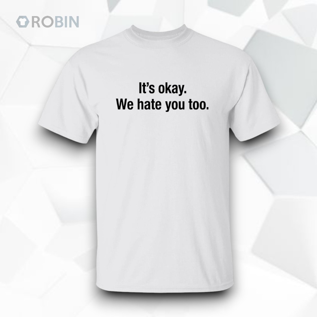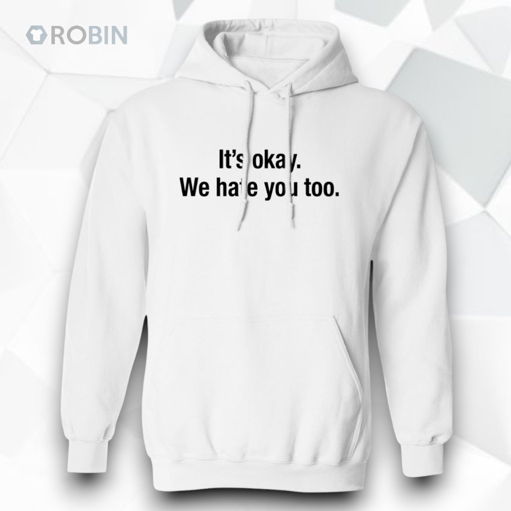 There’s a certain clarity in how some statements cut through the noise, flagging a shared understanding without fuss. The bold black type sprawled across this white hoodie delivers just that—straightforward and unapologetic. The phrase, “It’s Okay We Hate You Too,” balances sharp wit with casual defiance, perfect for those who want their attitude to speak clearly while keeping the tone lightly sarcastic. The minimalist design leans into a clean, bold sans-serif font that centers the text, creating a striking contrast against the crisp white fabric. No extra graphics or distractions—just the phrase itself, laid bare and confident. It’s a subtle declaration for anyone whose social circles thrive on humor that walks the line between playful and pointed. Young adults, meme enthusiasts, and anyone tuned into irony as a form of expression will find this piece resonates on more than just an aesthetic level. It’s not about taking everything too seriously but about owning the complexity of social interaction with a wink. A hoodie like this suits casual streetwear or relaxed days where comfort and personality weave together. It also makes for a thoughtful nod to friends or colleagues who appreciate the fine art of sarcasm without beating around the bush. Within that balance of visual simplicity and bold attitude, the it’s okay we hate you too shirt stands out as a quiet conversation starter and a marker of camaraderie in shared humor.