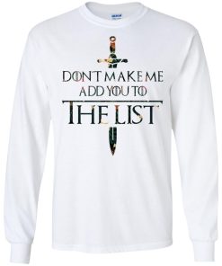 Game of Thrones don’t make me add you to the list t shirt, tank, hoodie, long sleeve, sweatshirt