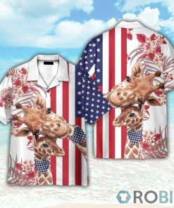 Giraffe 4th July America Independence Day America Flag Pattern Hawaiian Shirt features