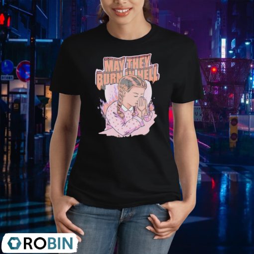 The Girl May They Burn In Hell Shirt is a bold and controversial piece of clothing that evokes strong emotions. It’s a garment that sparks conversation and debate, pushing the boundaries of social norms and expectations. Some see it as a powerful expression of freedom and rebellion, while others find it offensive and provocative. Regardless of one’s stance, the shirt serves as a reminder that fashion can act as a form of self-expression and can challenge societal conventions.