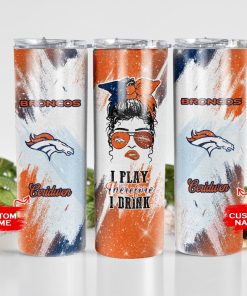 Girl With Denver Broncos Custom Name Stainless Steel Skinny Tumbler