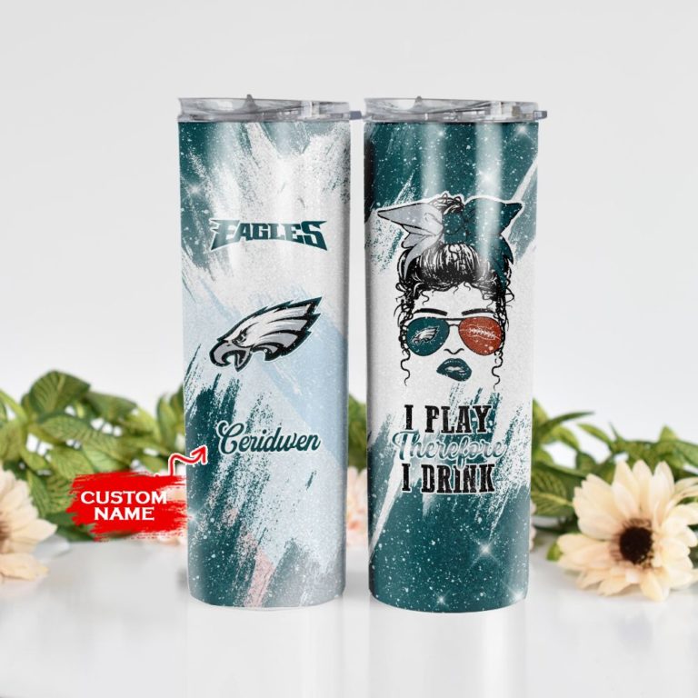 Girl With Philadelphia Eagles Custom Name Stainless Steel Skinny Tumbler
